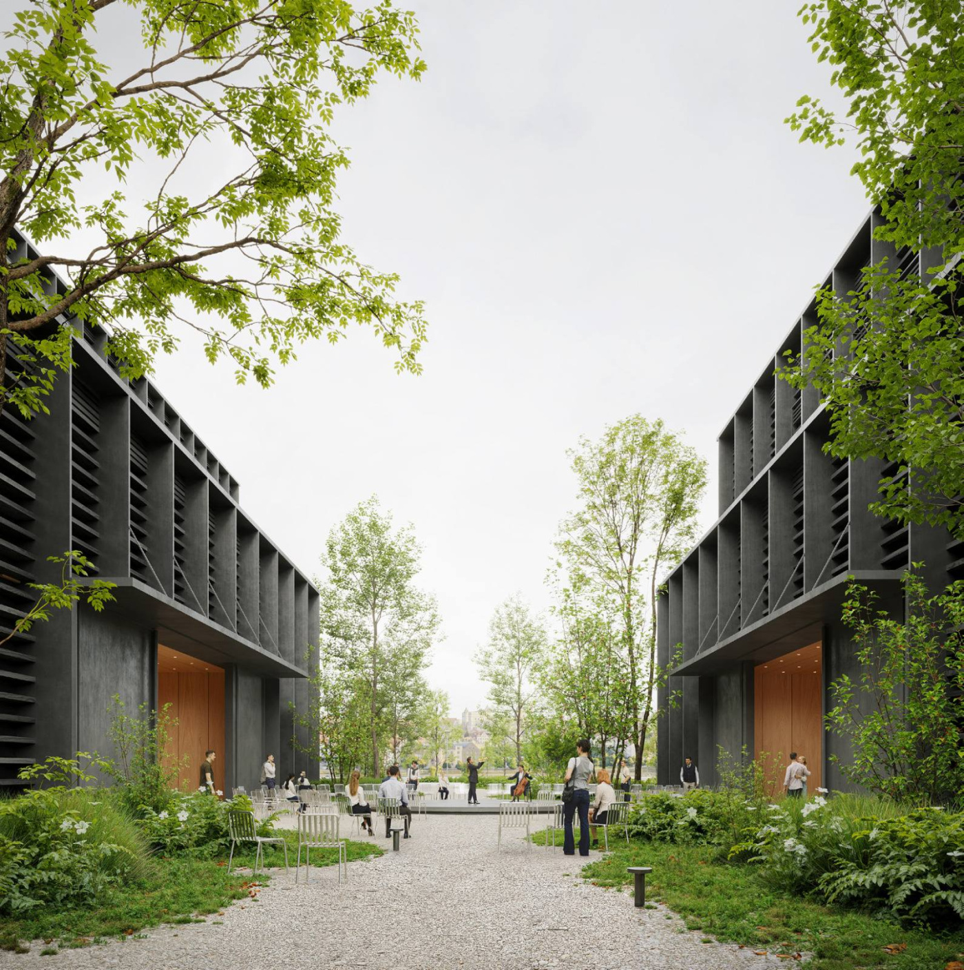 "Udane rozbicie programu funkcjonalnego na dwa niezależne budynki oraz wprowadzenie do przestrzeni przez nie wykreowanej terenów zielonych. Budynek zorientowany został właściwie względem nabrzeża, zgodnie z jego logiką uwzględniającą przyszły Most Kłodny a wątek kadrowania elewacji jest adekwatny do funkcji teatralnej" - czytamy w uzsadanieniu wyboru sądu konkursowego.