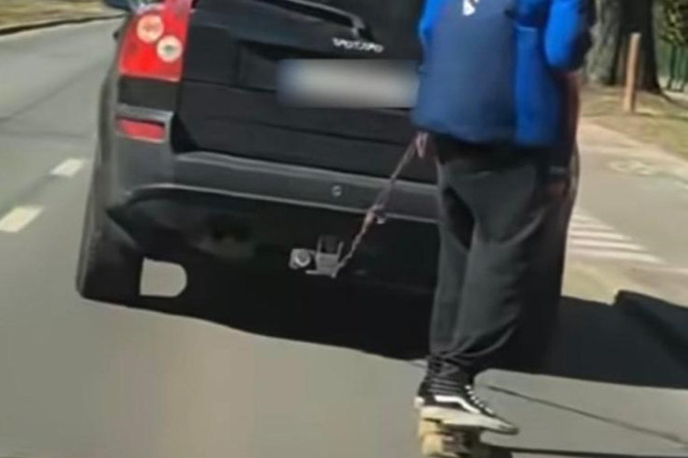 Z pozoru zabawne, ale w ocenie szczecińskiej policji niebezpieczne i niemądre zachowanie na ulicach Szczecina: komenda miejska publikuje zdjęcie auta osobowego, które jadąc po ulicy na lince 'holuje' mężczyznę na deskorolce.