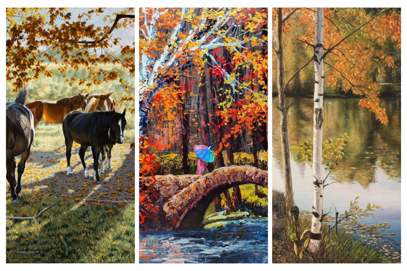 - Chłopaki malują ustami i dla nich ważny jest detal i to widać na obrazach, że one są bardzo wystudiowane. Ta odległość między pędzlem, płótnem a wzrokiem jest bardzo krótka. Natomiast Staś maluje stopą i te obrazy mają rozmach. Jak tutaj Pan podejdzie zobaczy Pan grubszą fakturę. Zupełnie w inny sposób Staś buduje konstrukcję obrazu. Myśmy się skupili akurat na jesieni, bo tak chcieliśmy, żeby to wszystko było spójne. Chłopaki malują zupełnie inaczej, ale też chcieliśmy, żeby to było właśnie takie bardzo różnorodne.